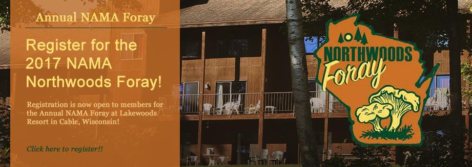 Registration is open for the NAMA 2017 Northwoods foray! Meet with us in the lovely Northwoods of Wisconsin known for massive white pines and old growth that has been fostering mushrooms for centuries. Stay at the comfortable Lakewoods Resort on Lake Namakagon near Cable, Wisconsin and enjoy state-themed dinners, a terrific lake view and many other wonderful amenities! For more information and to register check out the NAMA 2017 Northwoods Foray Event. We look forward to seeing you in September!
