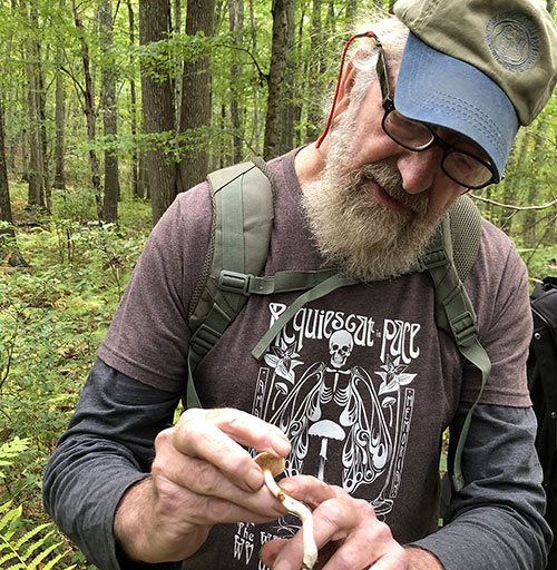 For over 30 years this person has devoted his life to the study of fungi and to helping others in this pursuit. Years ago, in a conversation with Dr. Rolf Singer, one of the giants of 20th Century mycology, one letter writer reports that Dr. Singer referred to this year’s Award winner as “an up and coming amateur mycologist’ with whom he had been working at the Field Museum in Chicago.” He went there to study the specimens in the herbarium. That was years ago. He has long since arrived. Now, he not only volunteers for every mycological activity he hears about, but he inspires others, the students he mentors, the mycological societies he works with, and the people in the nature preserves where collects and records all the fungi. Even after 30 years in the field, he is a tireless worker, an endlessly enthusiastic promoter of all things fungal, and one of the warmest, most generous, and least self-aggrandising individuals on the face of the Earth.